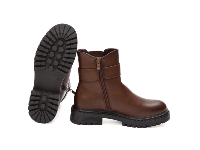 Stivaletto in simil pelle con elastico e fibia dorata