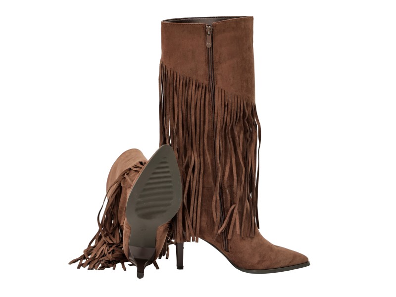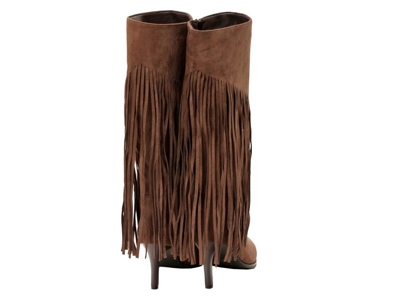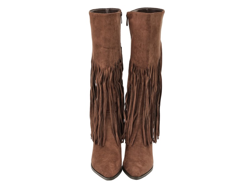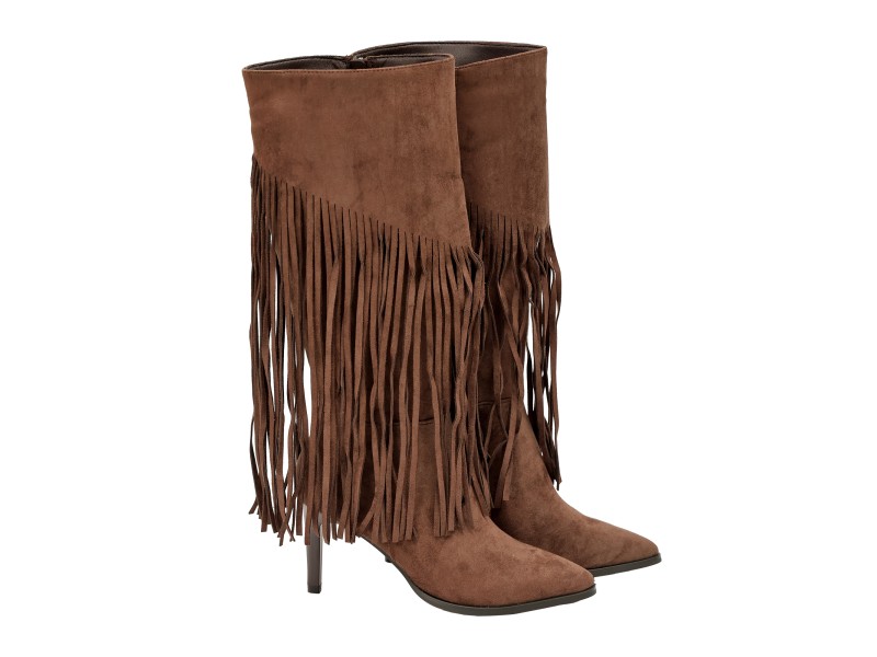 Stivali in simil camoscio con frange e tacco a spillo