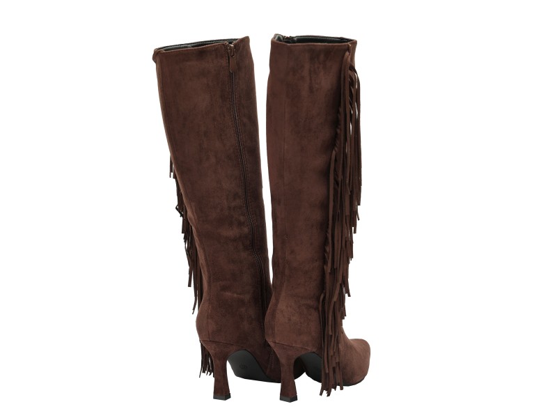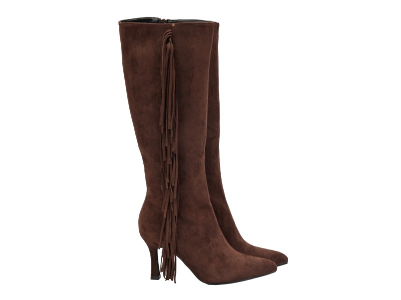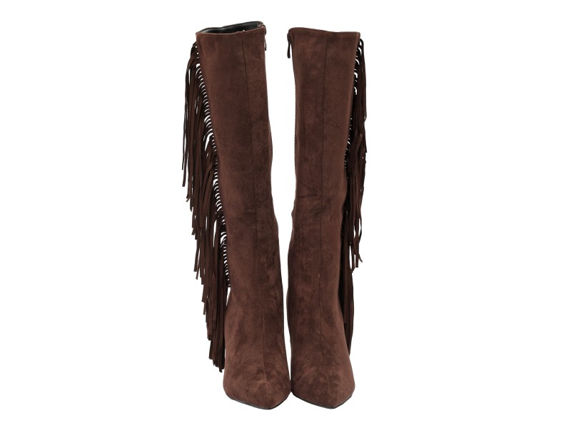 Stivali scamosciati con frange e tacco a spillo