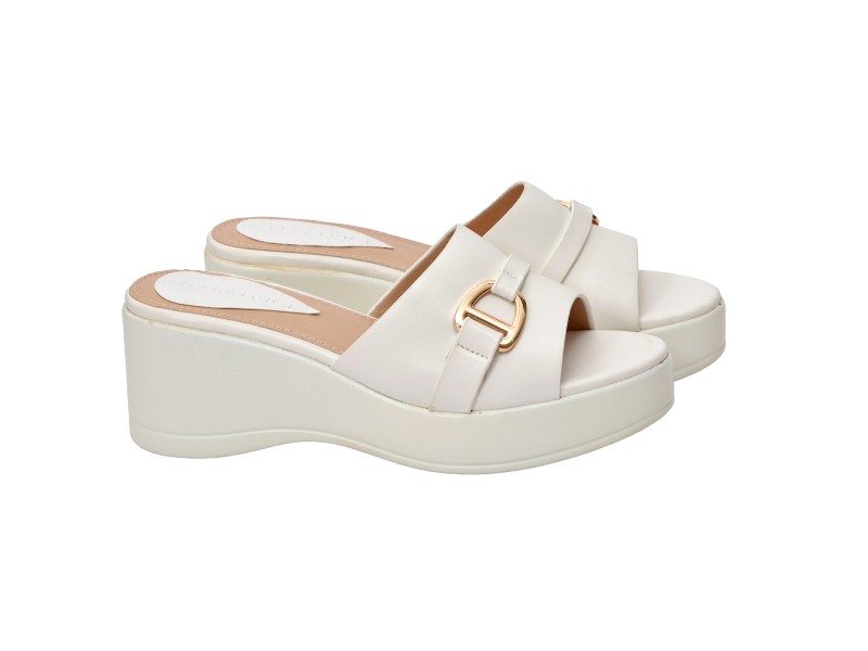 | • Tacco 7.0 cm - PLateaux 3.0 cm • Suola in sintetico • chiusura : da infilare • Sottopiede in sintetico |