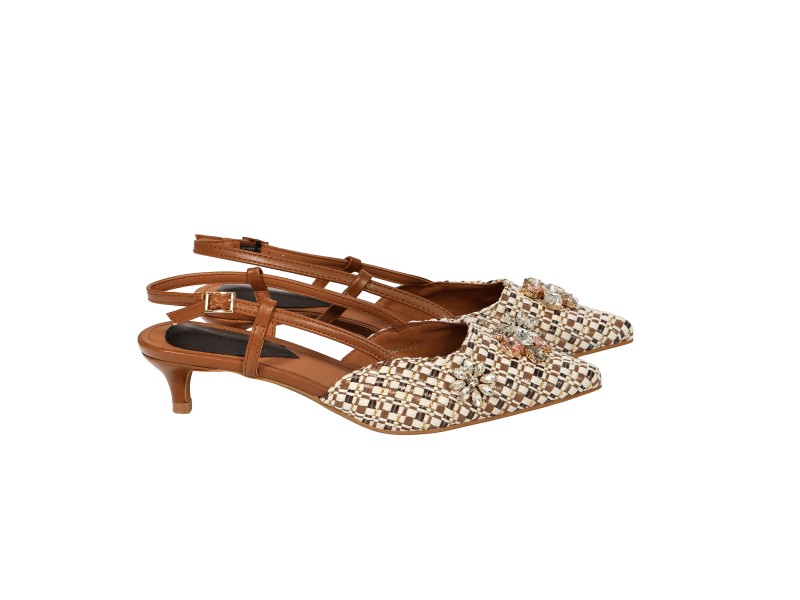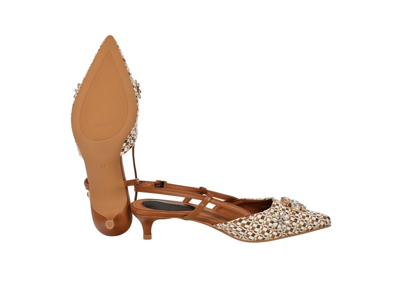 Decolletè con applicazione gioiello- tacco 4,5 cm